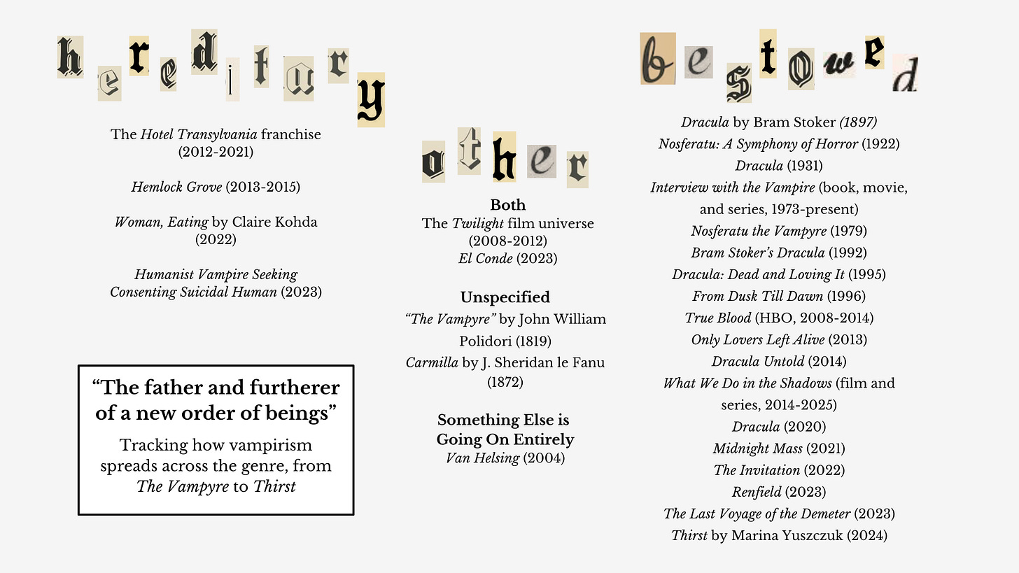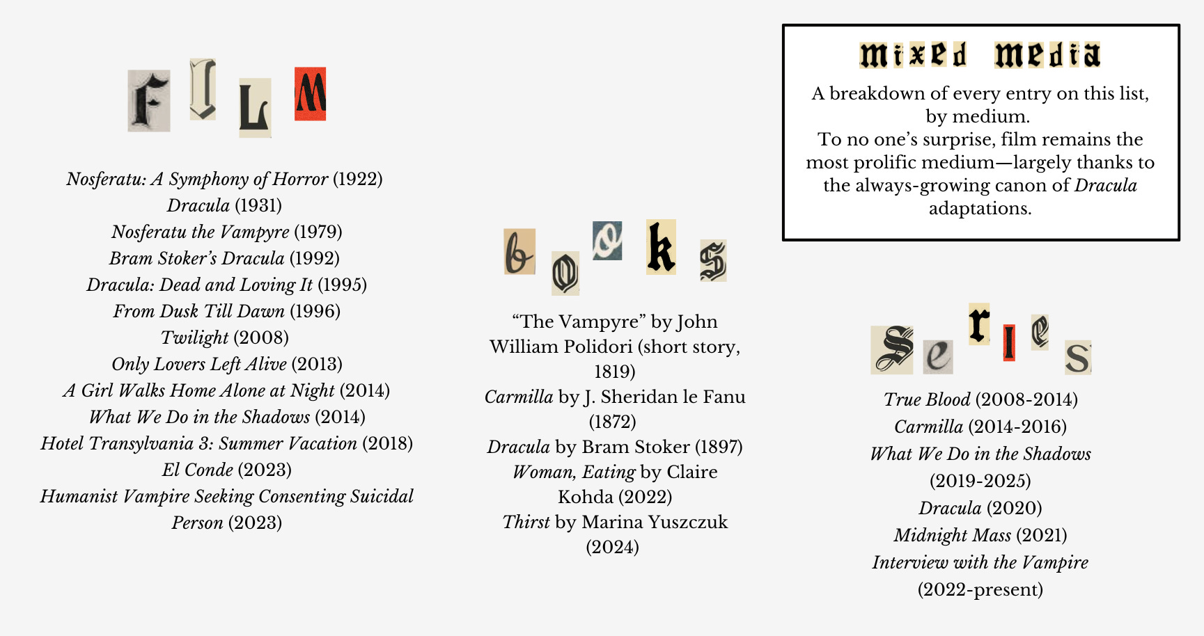 this has made it so clear I'm slacking in my vampire media consumption?! Twilight and the 1922 Nosferatu are the 2 of 25 I've seen/read/etc. also-- so impressed by the visuals in this newsletter!